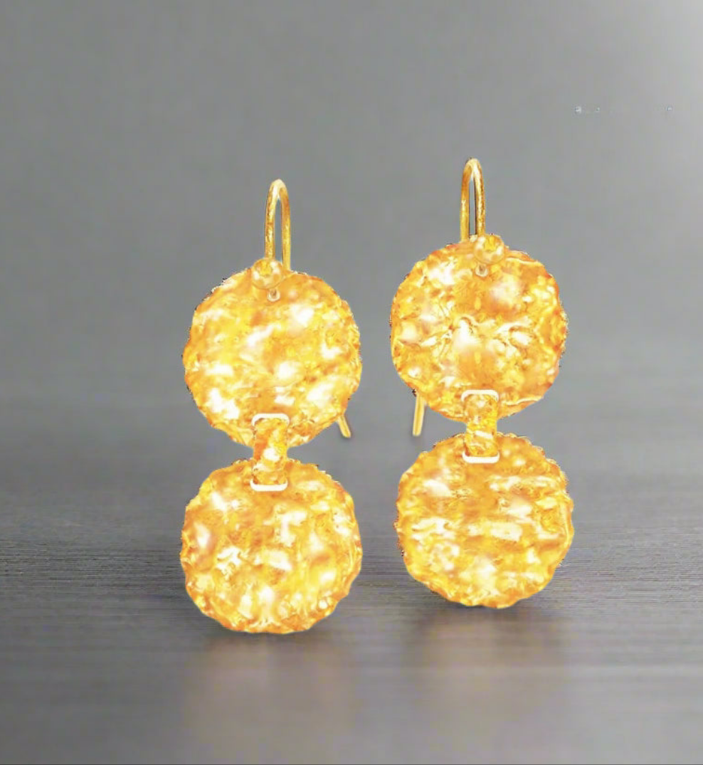 Beautiful hammered earrings can be created in yellow 22k gold: weight and price will be smaller because 24k gold is heavier than 22k gold.