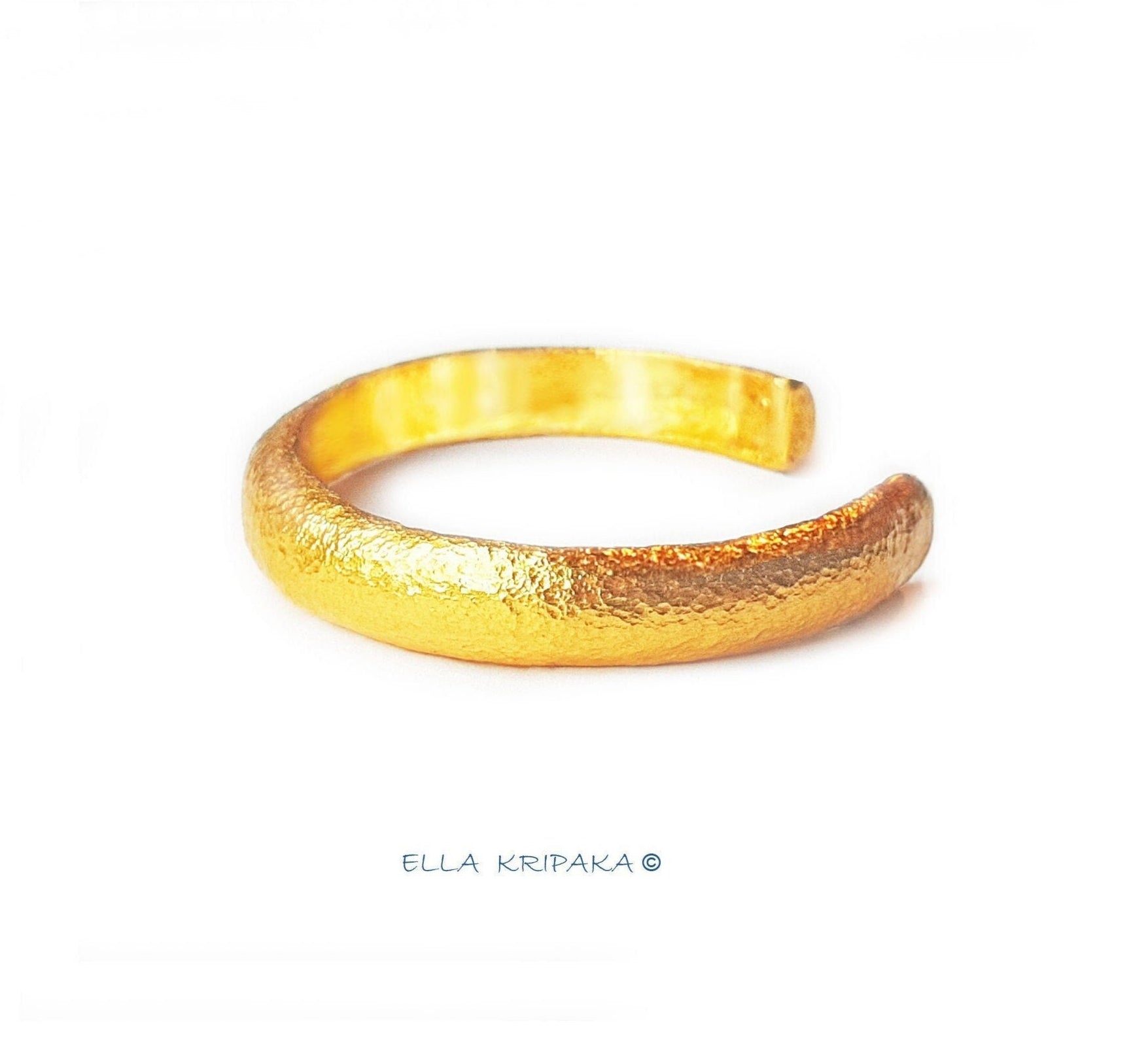 Hammered Ancient Rome Cuff Bracelet is Made-to-Order in solid 24k 9999 gold. I create my jewelry design with pictures on paper. I use 100% handmade jewelry technology as in Ancient Empires: my art forging with a few hammers, manual cutting, and sawing, and manual welding for gold. The wonderful cuff is hand-polished by me and sparkles a lot on hammered art textures of pure 24k gold. Each gold cuff is created uniquely, without copies with jewelry machines. I do not use electrical jewelry tools. I make the biggest hardness of 24k gold for the durable gold cuff: it is long creative work. Hammered art textures of 24k gold are excellent for a long time of wearing