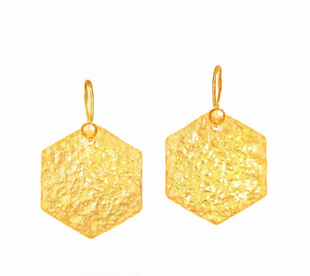 Hammered 24k 9999 Gold 10g &16g Hexagon Thick Earrings Custom 22k